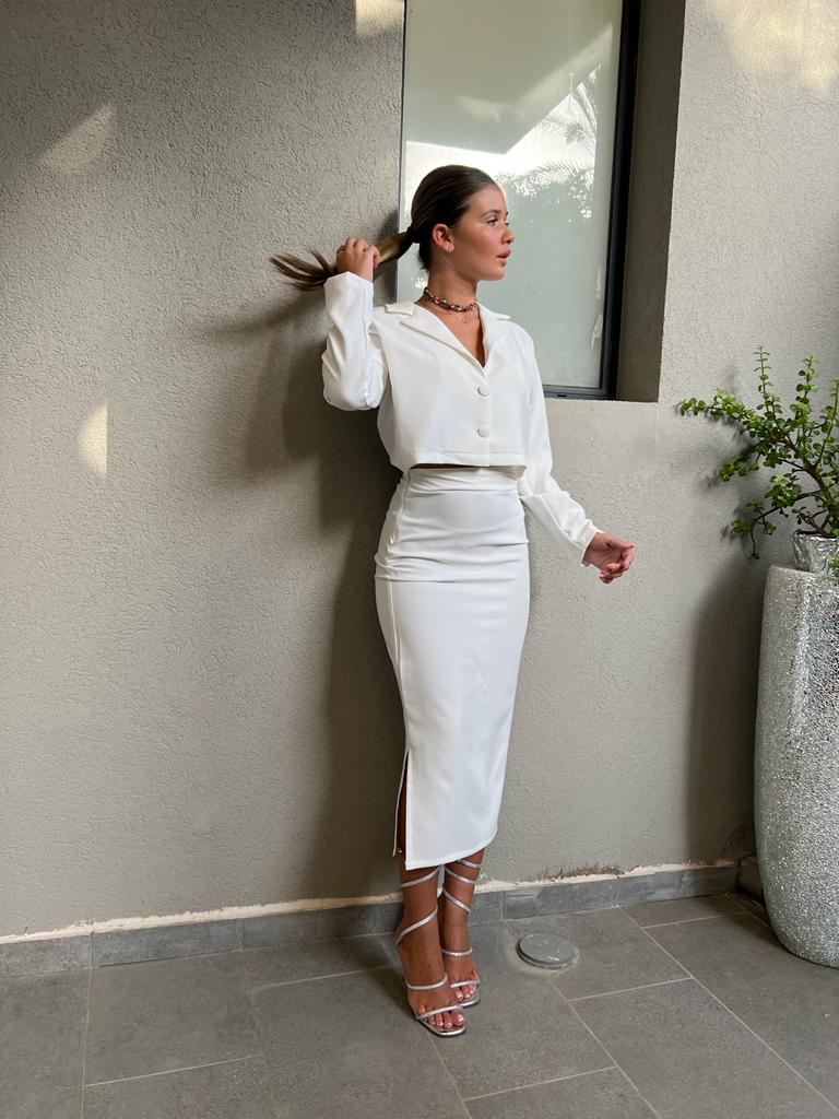 חליפה מחוייטת אלגנטית מבד מחטב לייקרה. מושלמת לערב